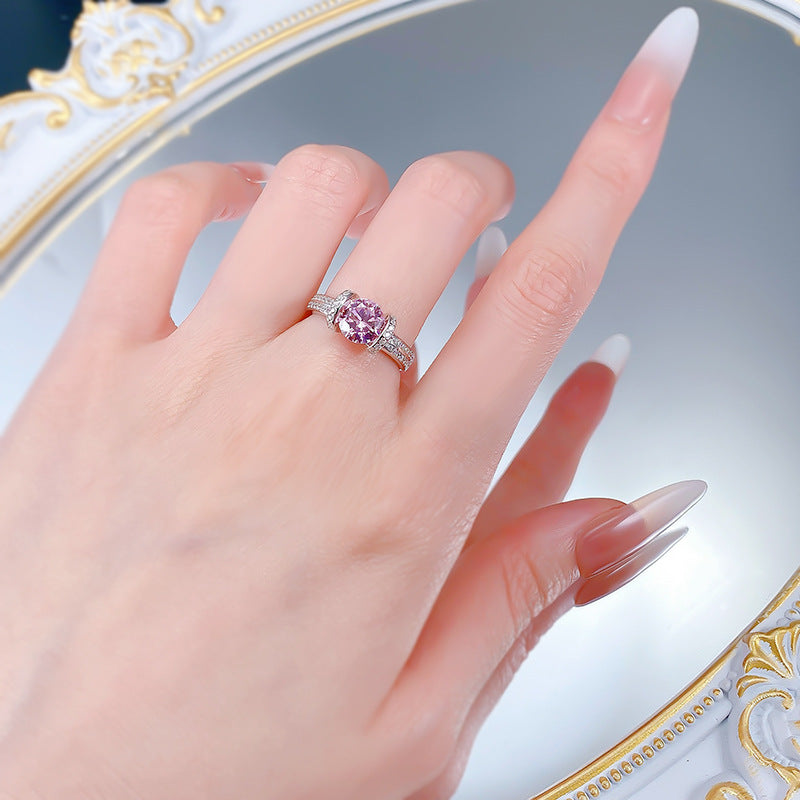 04/2025 Jewelry New S925 silver inlaid 7.0 par powder ring exquisite