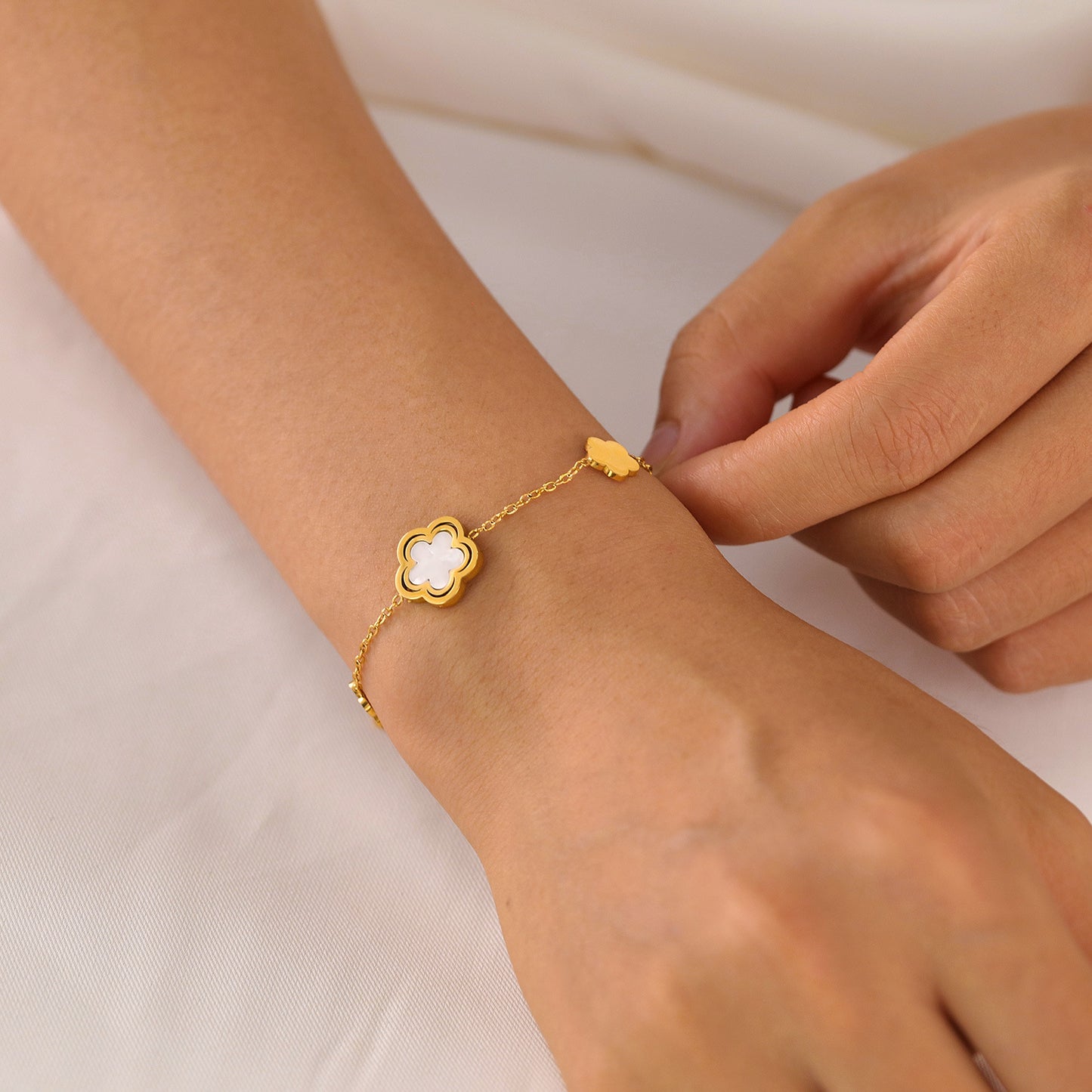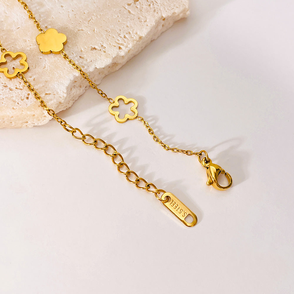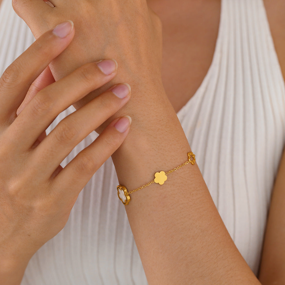11/2024 Bracelet Women Stainless Steel Hollow Five Petal Mother-of-Pearl Design Jewelry Wholesale