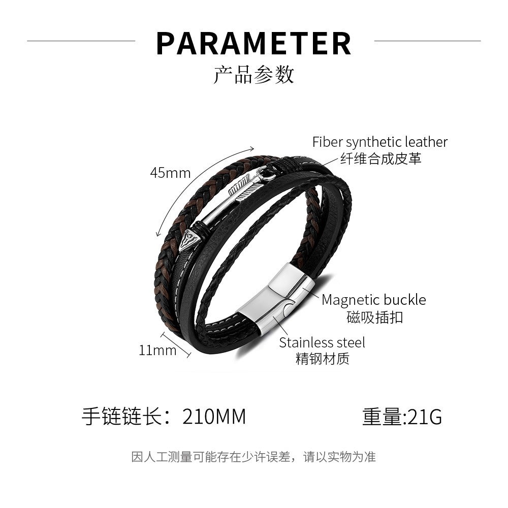 11/2024 Vintage leather bracelet men's stainless steel personalized arrow multi-layer braided leather bracelet